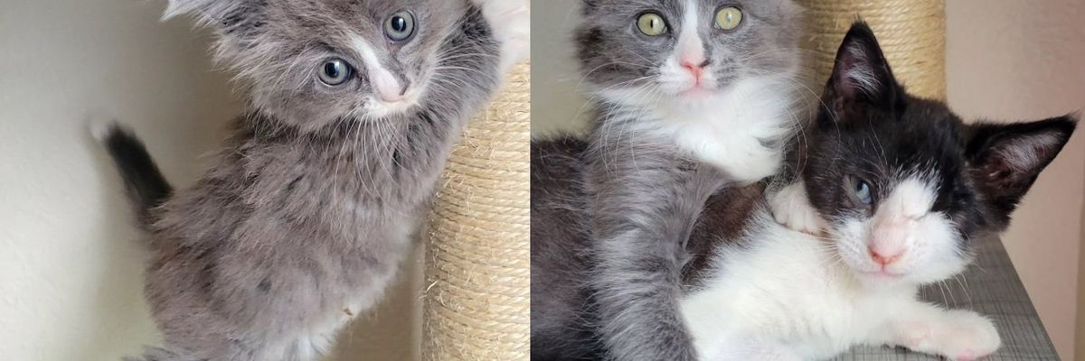 That's when Tippy, a fluffy gray-and-white kitten, came along. She'd arrived at a local ER clinic and needed a safe place to land. Around the same age as Goose and also in need of a companion, she was the perfect match.