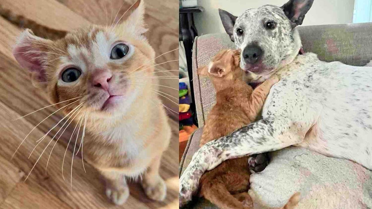 "Flip absolutely adores dogs. He was getting cozy with his canine foster sister (Mable) over the weekend, and it melted our hearts," Thrifted Kittens Animal Rescue said.