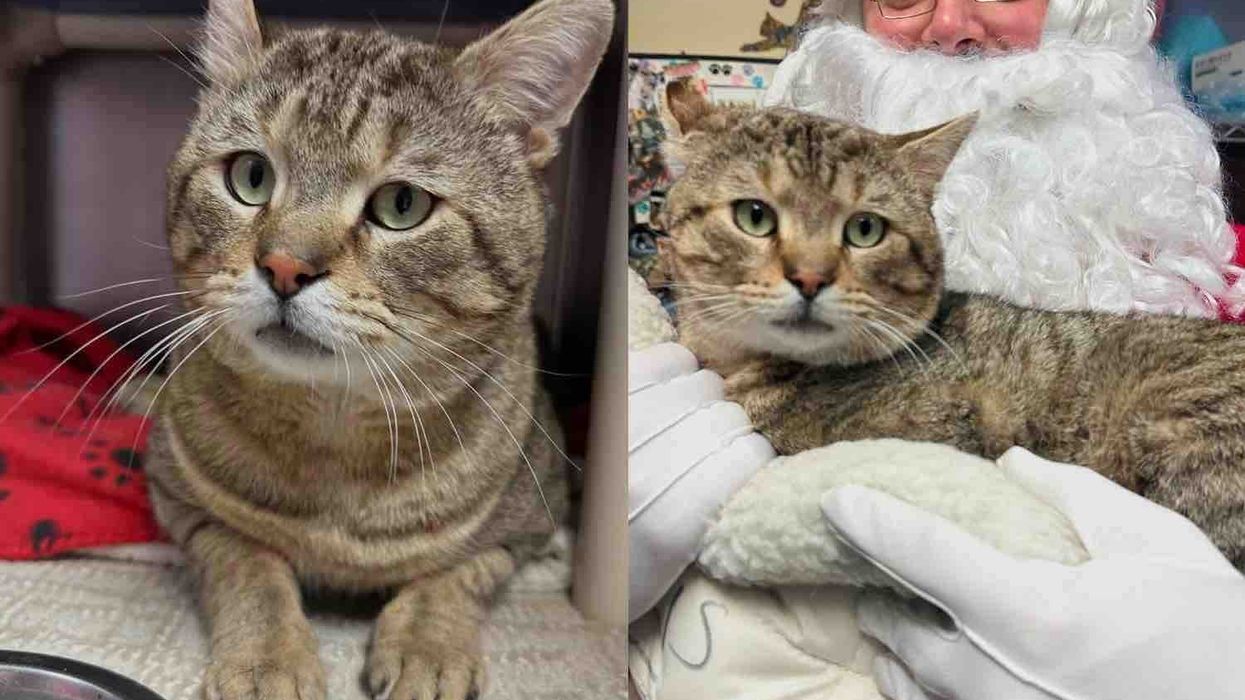 When Santa Claus stopped by to visit the shelter animals, Otis was more than happy to greet him with cuddles and purrs.